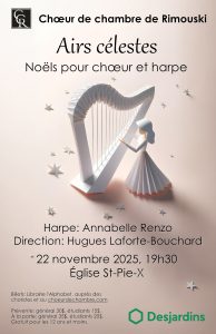 Le Chœur sera accompagné par un ensemble à cordes d’exception, réunissant Élise Lavoie et Marie-Édith Racine au violon, Line Giasson à l’alto, James Darling au violoncelle, et Mylène Bélanger au clavecin, le tout sous la direction talentueuse de Hugues Laforte-Bouchard.